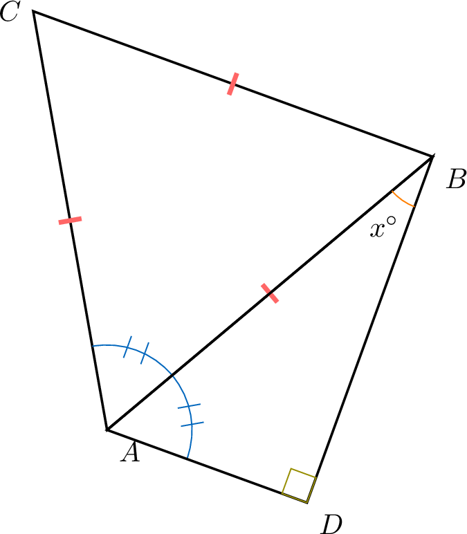 Trouve l’angle inconnu dans le triangle ci-dessous :