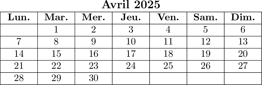 Quel jour de la semaine est le 20 avril ?