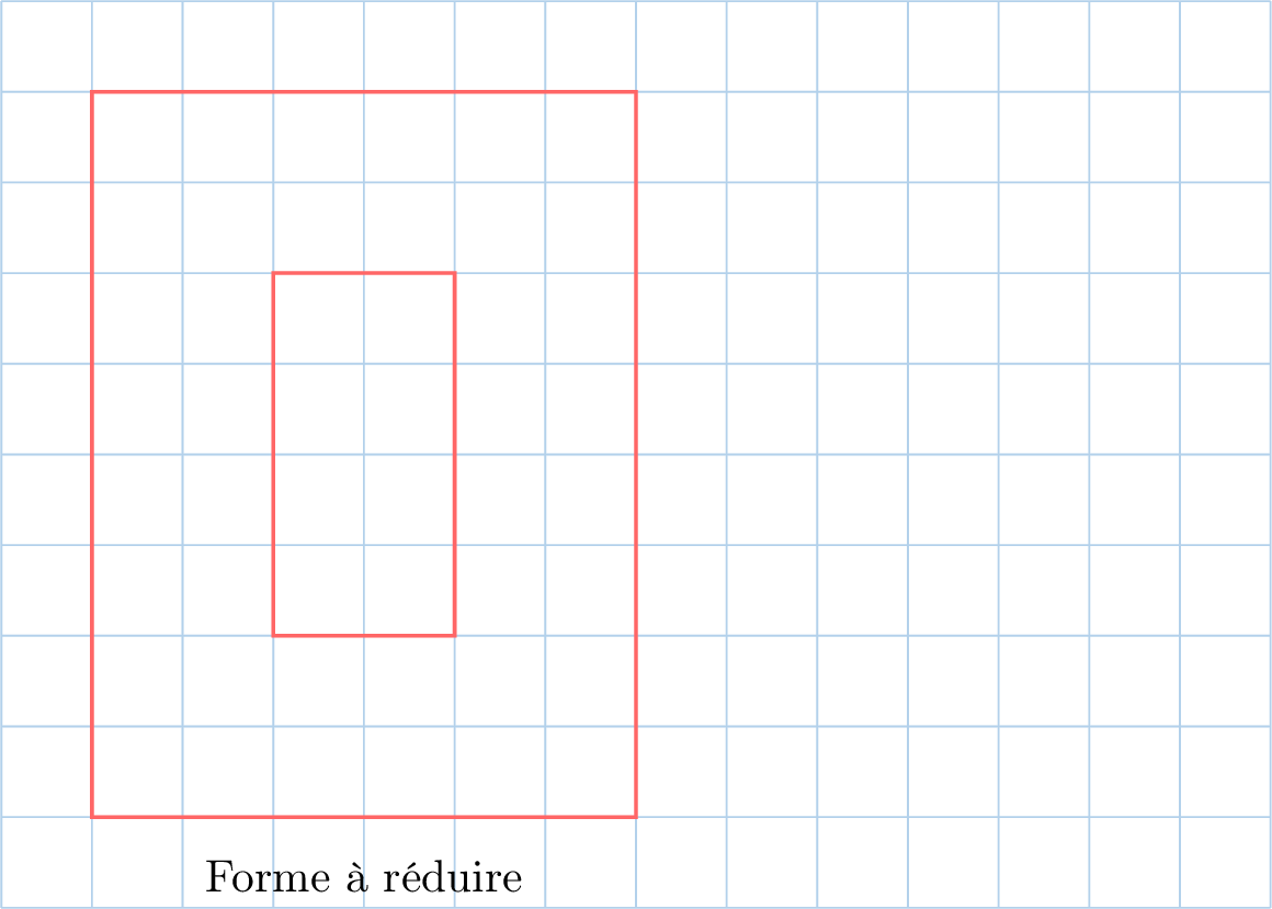Réduis la forme ci-dessous par un facteur d’échelle de 2 sur du papier quadrillé.