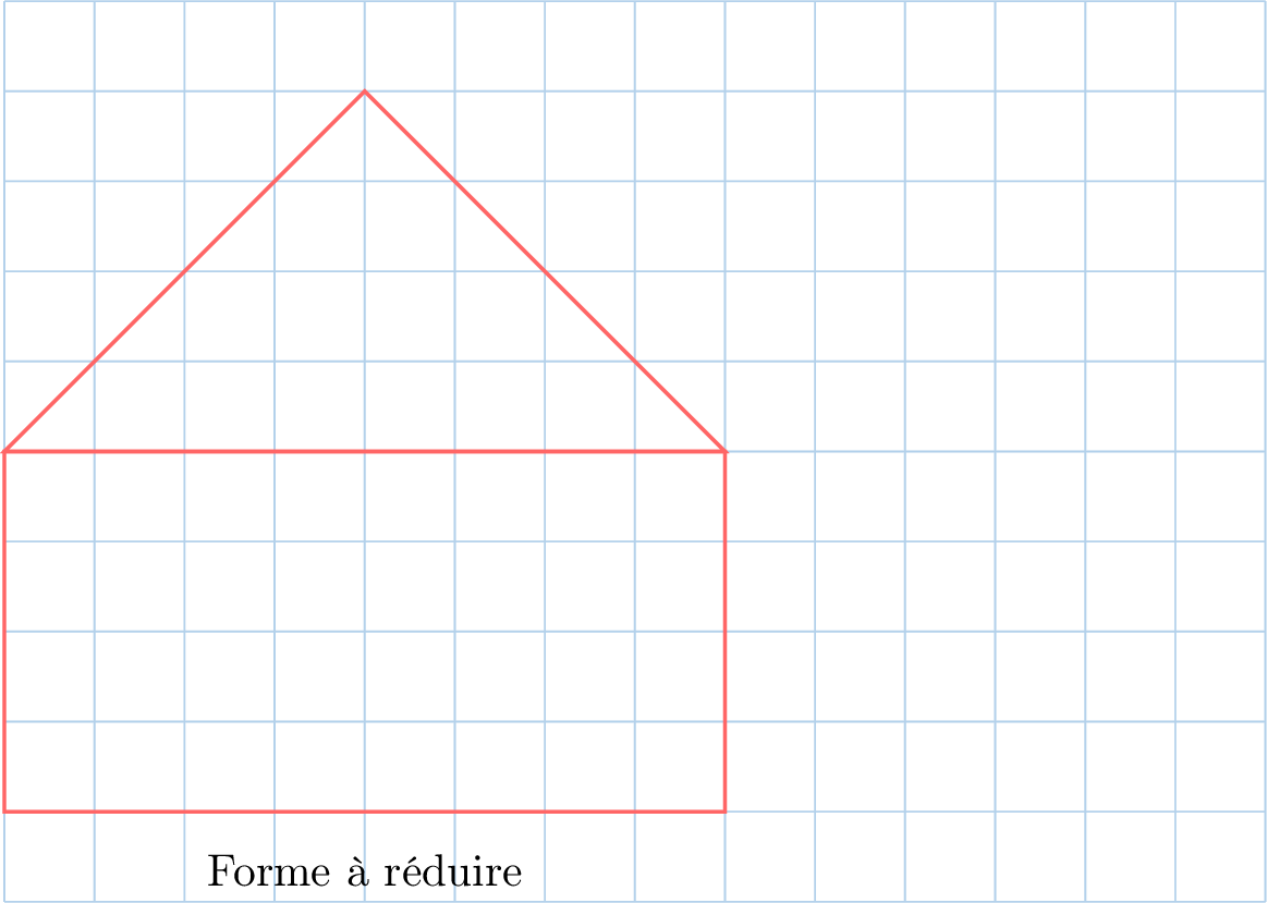 Réduis la forme ci-dessous par un facteur d’échelle de 2 sur du papier quadrillé.