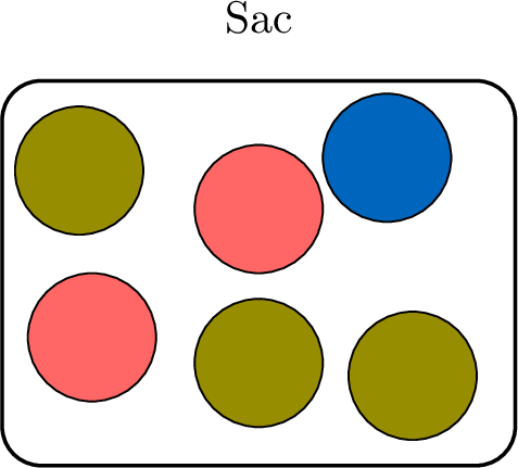 Imagine un sac avec des boules : 2 rouges, 1 bleue et 3 vertes. Si tu en choisis une sans regarder, quelles sont toutes les couleurs possibles que tu pourrais obtenir ?