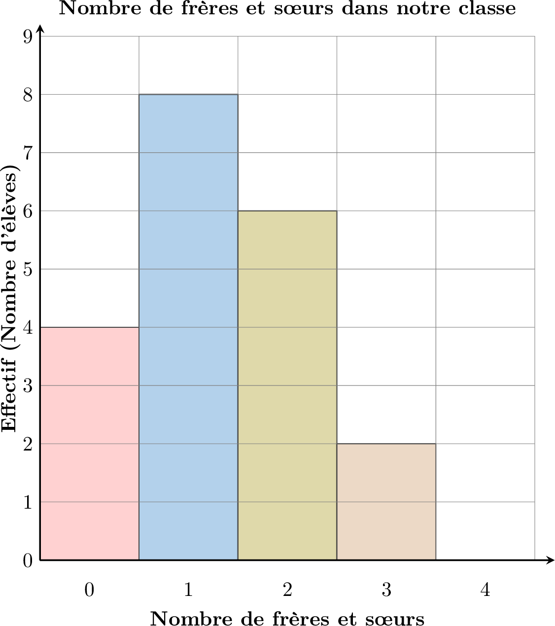 Ce diagramme en bâtons montre le nombre de frères et sœurs des élèves d'une classe.