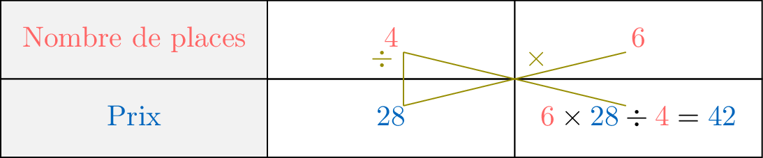 Deux variables \(\textcolor{colordef}{x}\) et \(\textcolor{colorprop}{y}\) sont dites proportionnelles si le rapport \(\dfrac{\textcolor{colorprop}{y}}{\textcolor{colordef}{x}}\) est constant, égal à une valeur \(\textcolor{olive}{k}\) appelée coefficient de proportionnalité :$$\dfrac{\textcolor{colorprop}{y}}{\textcolor{colordef}{x}} = \textcolor{olive}{k}.$$On dit aussi que \(\textcolor{colorprop}{y}\) est proportionnel à \(\textcolor{colordef}{x}\) si, pour la même constante \(\textcolor{olive}{k}\),$$\textcolor{colorprop}{y} = \textcolor{olive}{k}\times \textcolor{colordef}{x}.$$
