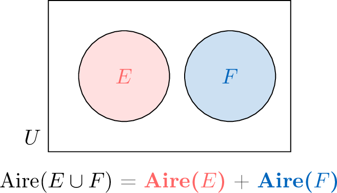 | \(E \cap F = \emptyset\) | \(E\) et \(F\) sont disjoints | \(E\) et \(F\) sont mutuellement exclusifs | |