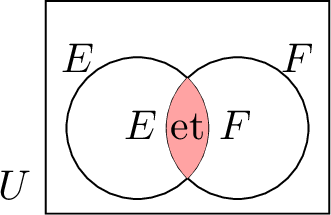 | \(E \text{ et } F\) | Intersection de \(E\) et \(F\) : \(E \cap F\) | \(E\) et \(F\) | |