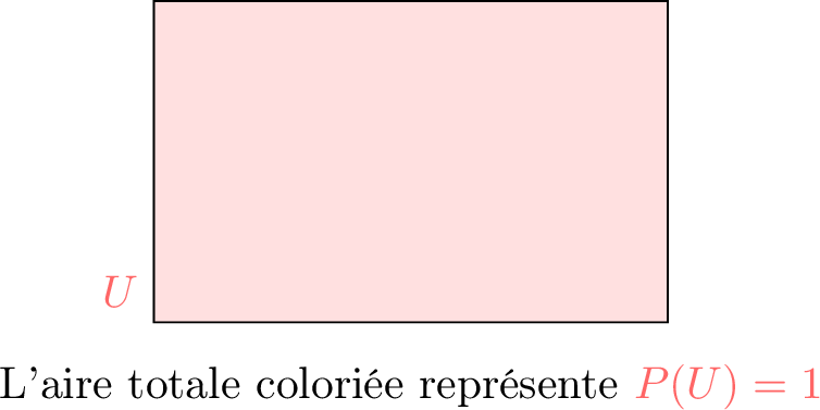 ,est la somme de l'aire de l'événement, \textcolor{colordef}{\(P(E)\)}, et de l'aire de son complémentaire, \textcolor{colorprop}{\(P(E')\)}.
