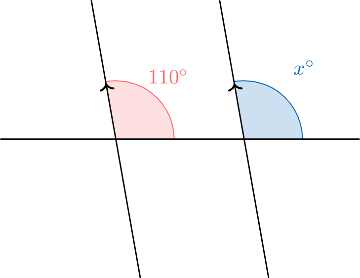 Trouve la mesure de l’angle inconnu \(x^\circ\).