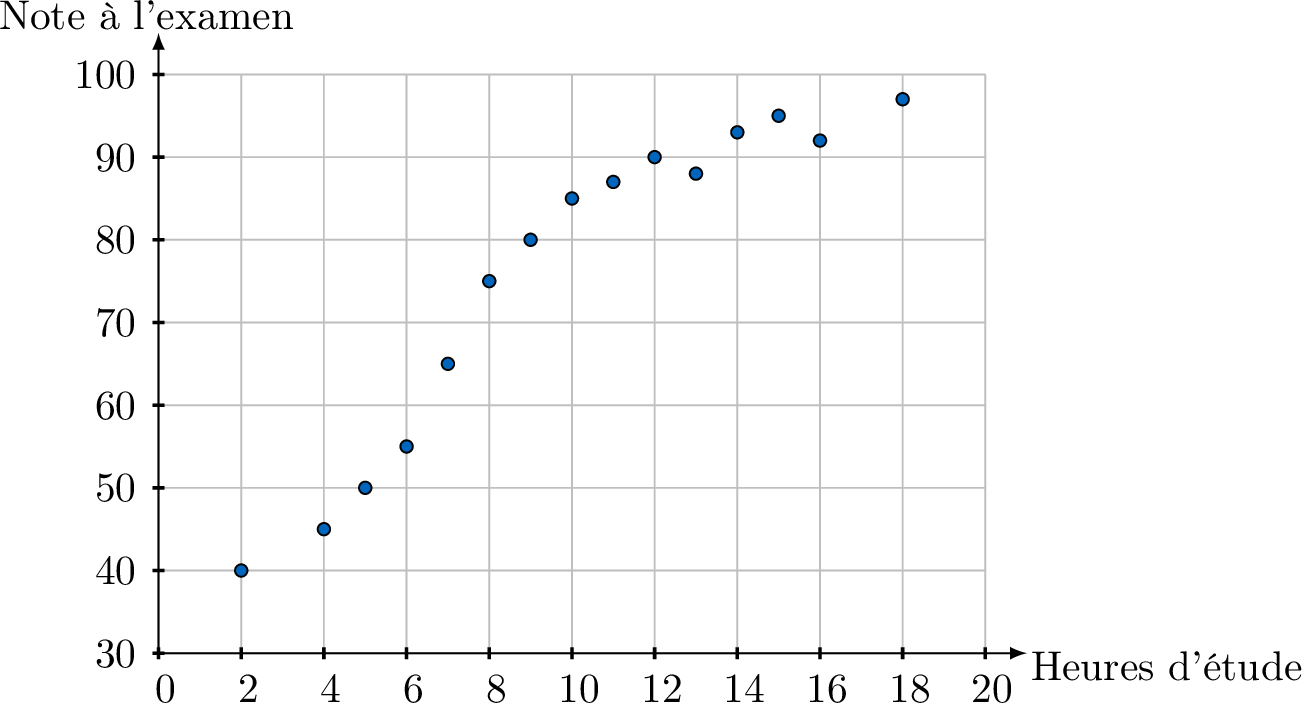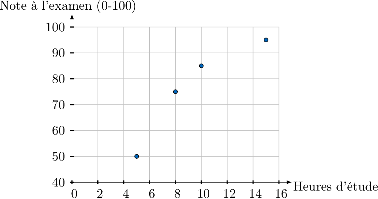 droite de régression des moindres carrés, écrite sous la forme \(y = ax + b\), est l'unique droite du meilleur ajustement qui modélise la relation linéaire entre \(x\) et \(y\). Elle est calculée en minimisant la somme des carrés des